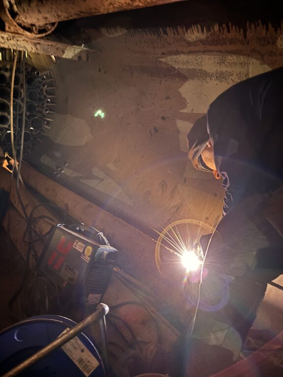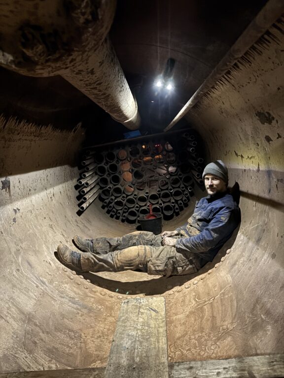 Die letzten Rohre wurden aus dem Kessel gebaut und der Kessel von innen grob gereinigt. Und wir haben gute Nachrichten, wir konnten keine Schäden oder ähnliches feststellen, was uns natürlich sehr motiviert hat.