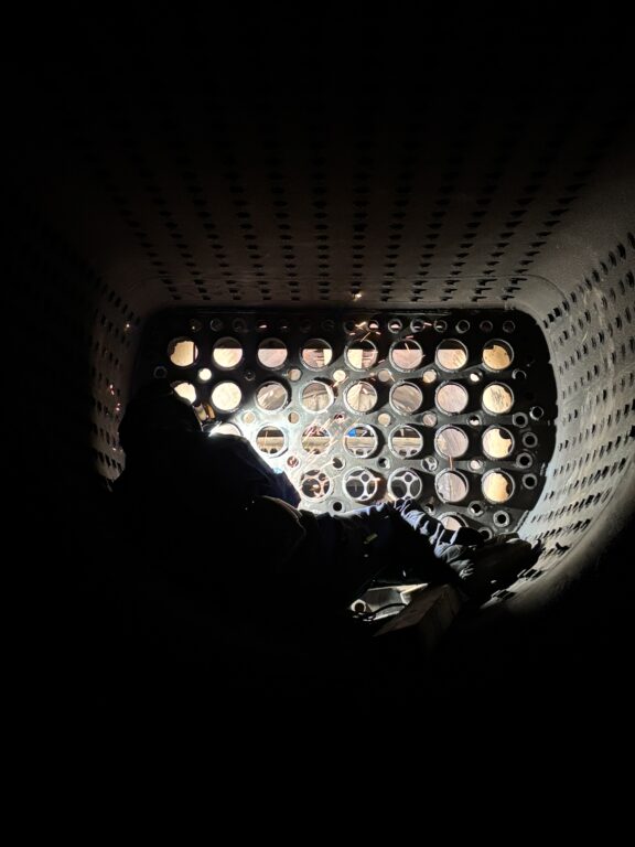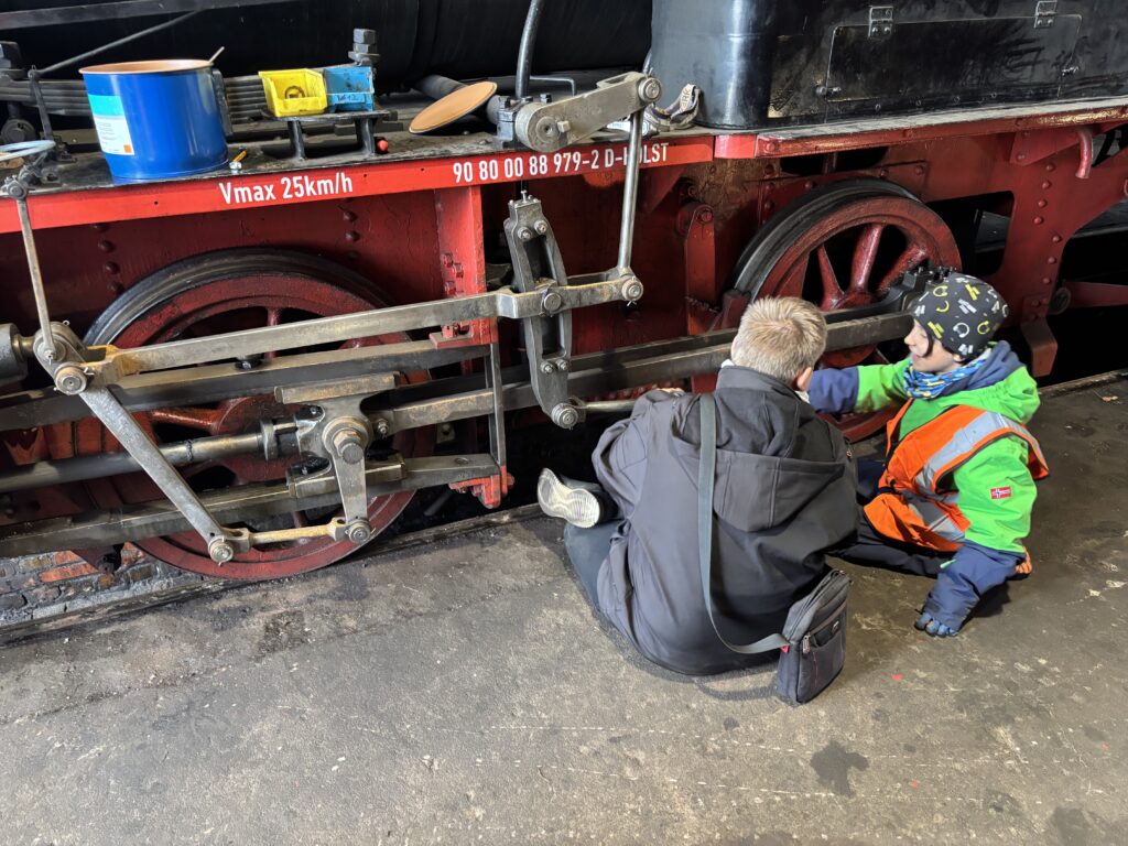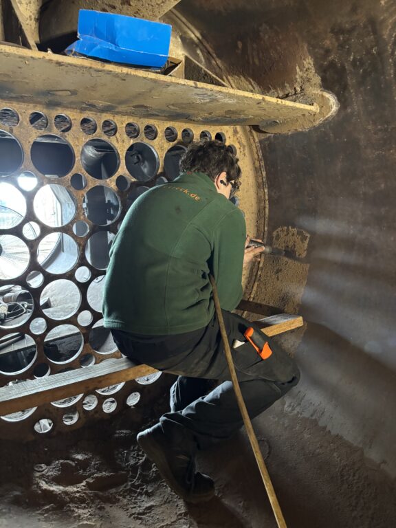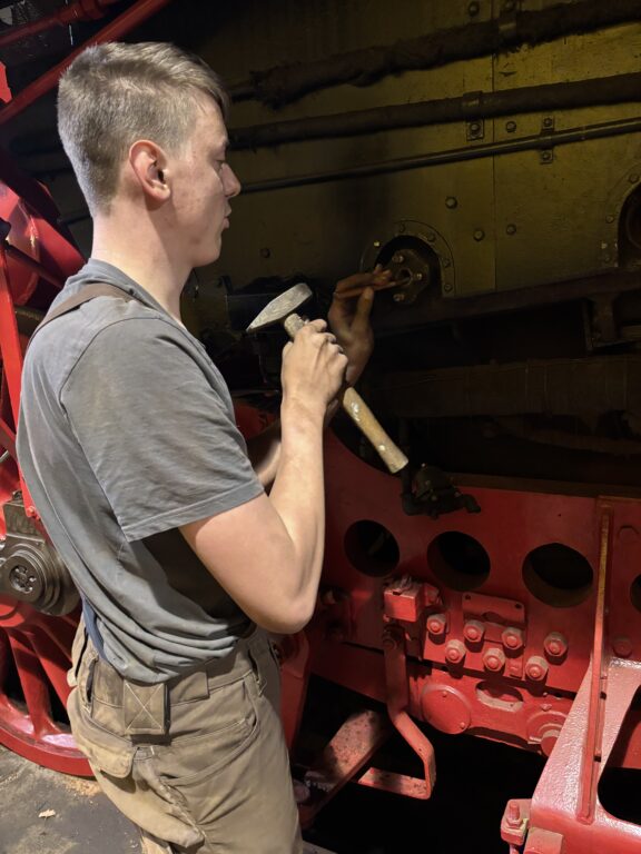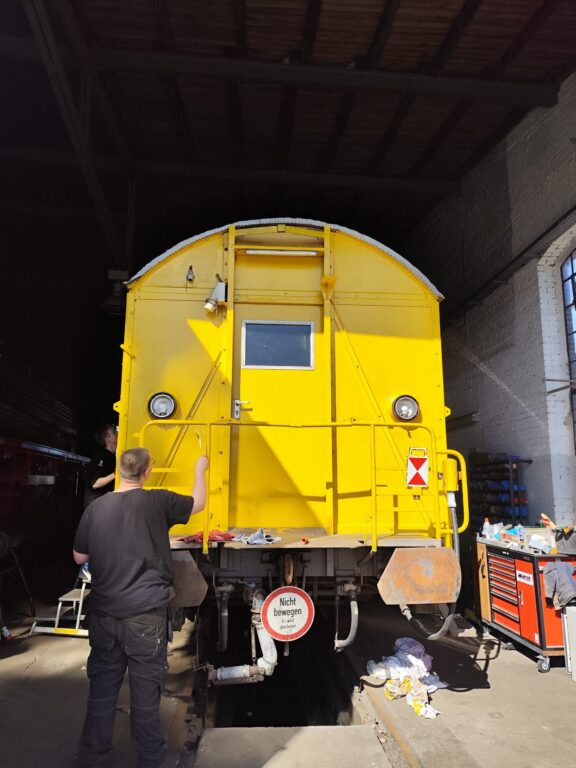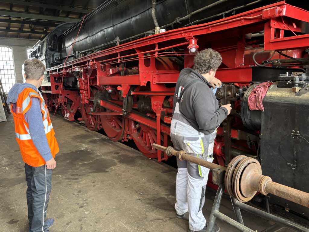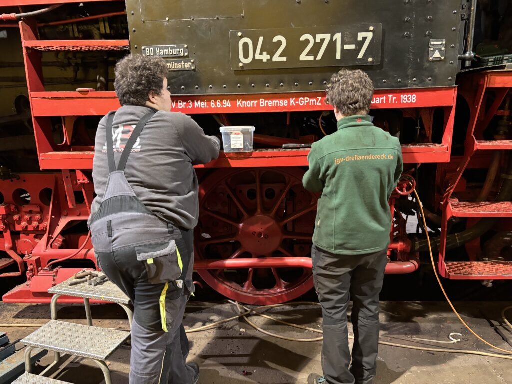 An der Dampflok wurden weiter im Kessel die Schweißnähte der Rohrenden entfernt, genauso wie der Kalk im Kessel. An den Gestängen, vorne am Zylinder wurde das alte Öl und der Docht entfernt, gereinigt und neu bestückt.