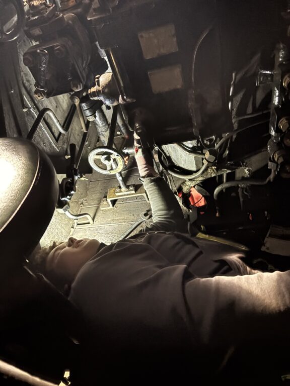 An der Dampflok ging es auch an verschiedenen Baustellen weiter, im Kessel wurde weiter der Kalk entfernt, im Führerhaus wurden erste aufgearbeitete Gestängestängeteile für den Boschöler montiert.