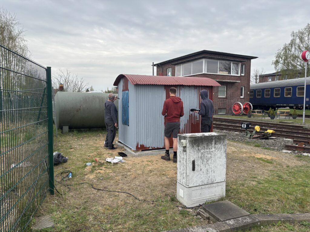 Als Abschluss hat eine der beiden Blechhütten auf dem Gelände einen frischen Anstrich bekommen.