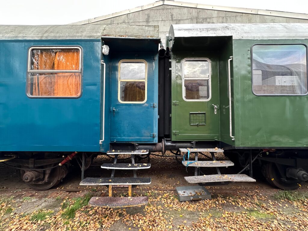 Das Bild des Monats Oktober zeigt den Übergang unserer beiden neu lackierten Dreiachser, welche als Aufenthaltswagen und Wohn-Schlafwagen genutzt werden.